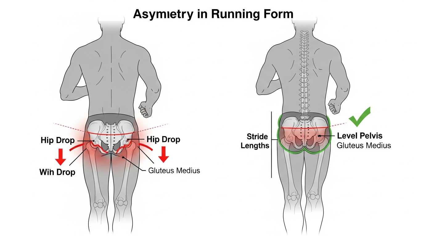 [달리기 자세 백과 18편] 숨겨진 부상 원인: 좌우 비대칭 보폭과 골반 기울임 교정